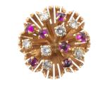 Bague en or rose en forme de fleur aux diamants et rubis