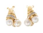 Paire de boucles d'oreilles en or avec perles et diamants
