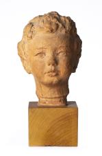 Angelo MINGHETTI (1822-1885), manufacture de, Bologne, buste en faïence émaillée polychrome représentant Laura